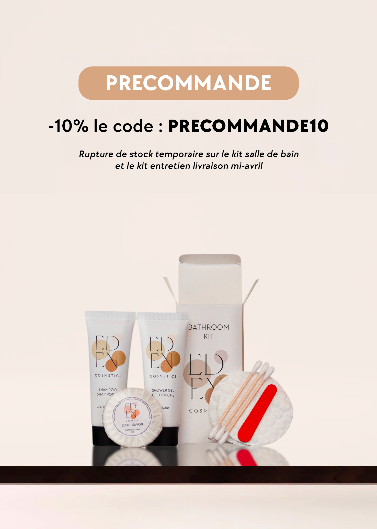 Eden Cosmetics propose des kits de bienvenue complets pour Airbnb, hôtels, gîtes et locations de vacances.