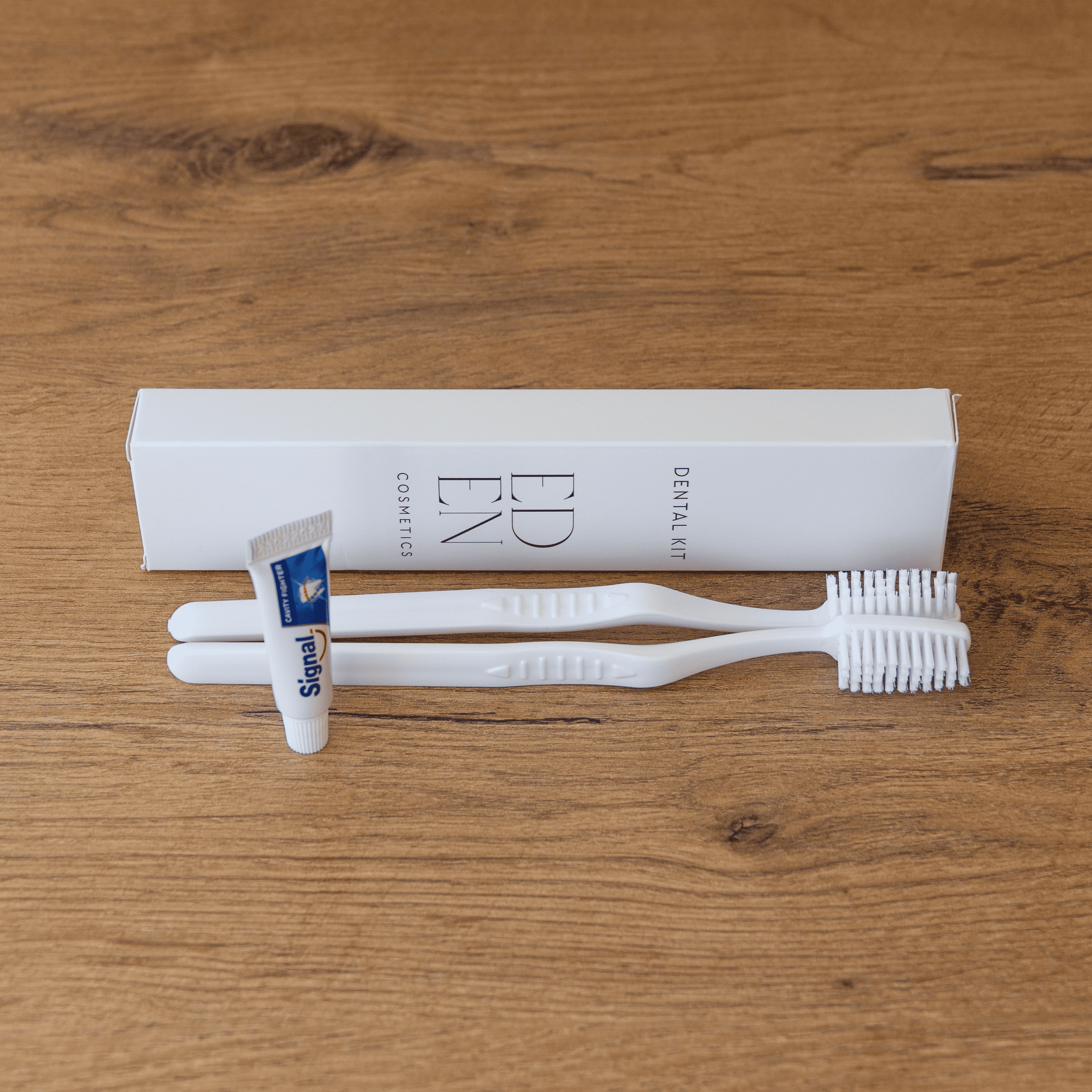 Le dental kit Eden Cosmetics a été conçu pour répondre aux besoins essentiels des voyageurs avec une présentation sobre et professionnelle. Prêt à poser, il garantit confort, propreté et praticité dès les premières heures du séjour.